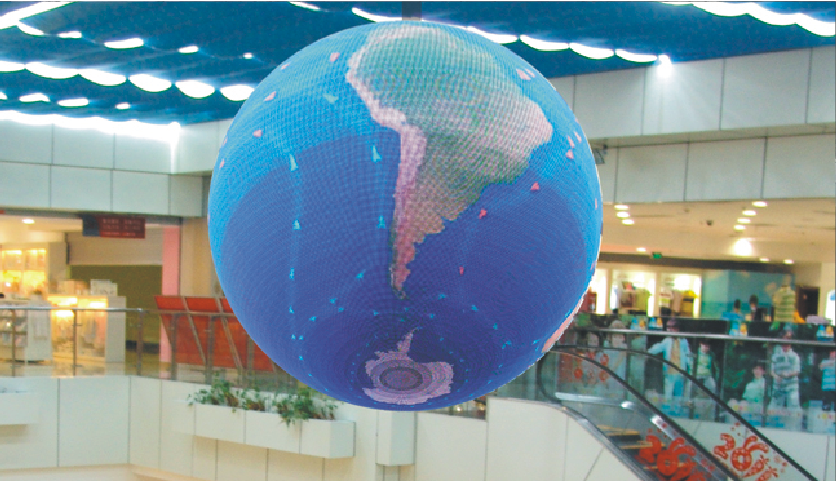 LED球形顯示屏能夠?qū)崿F(xiàn)360度的可視角度,全方位的播放視頻,各個角度都能感受到良好的視覺效果,沒有平面視角的問題,并且能夠根據(jù)具體需求將球形素材直接映射到顯示屏上面,比較常見的有地球、足球等,讓人感覺惟妙惟肖。根據(jù)客戶需求和安裝環(huán)境定制尺寸大小。