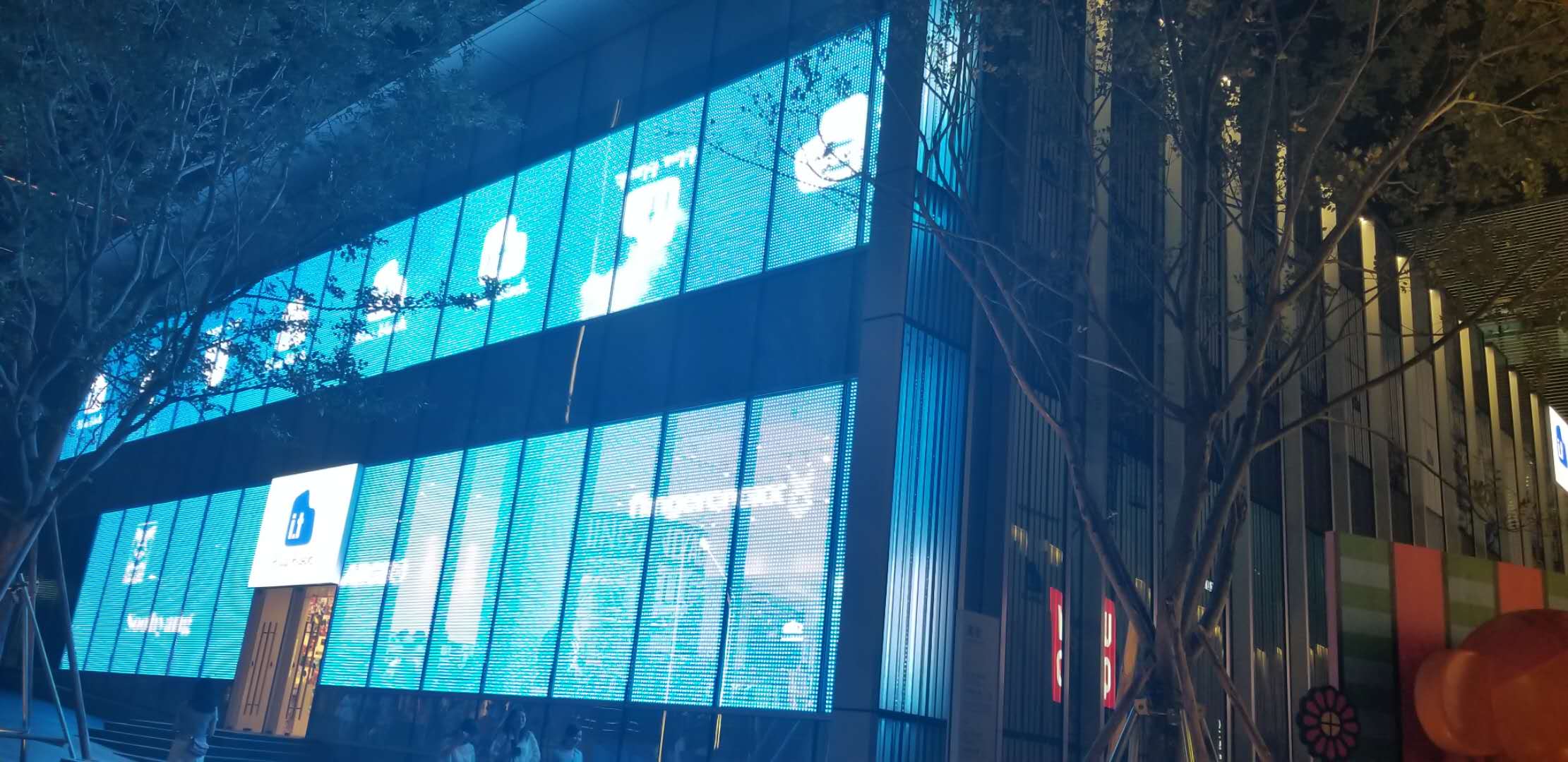 深圳P50格柵透明屏項(xiàng)目由上海智彩科技設(shè)計(jì)、安裝